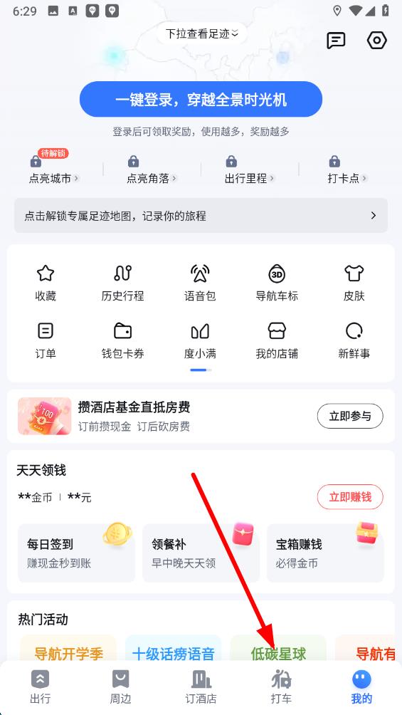 1、打開(kāi)百度地圖應(yīng)用,點(diǎn)擊底部導(dǎo)航欄中的打車(chē)選項(xiàng),進(jìn)入打車(chē)相關(guān)界面,準(zhǔn)備查找公交功能入口。