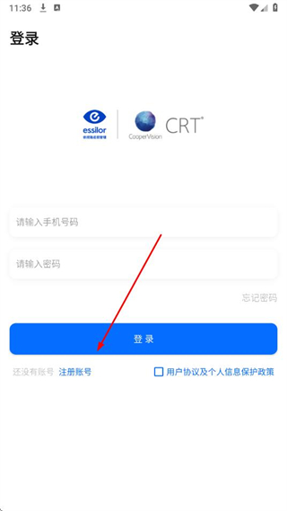 1、打開CRT參數(shù)選擇APP,在登錄頁面點擊注冊賬號。