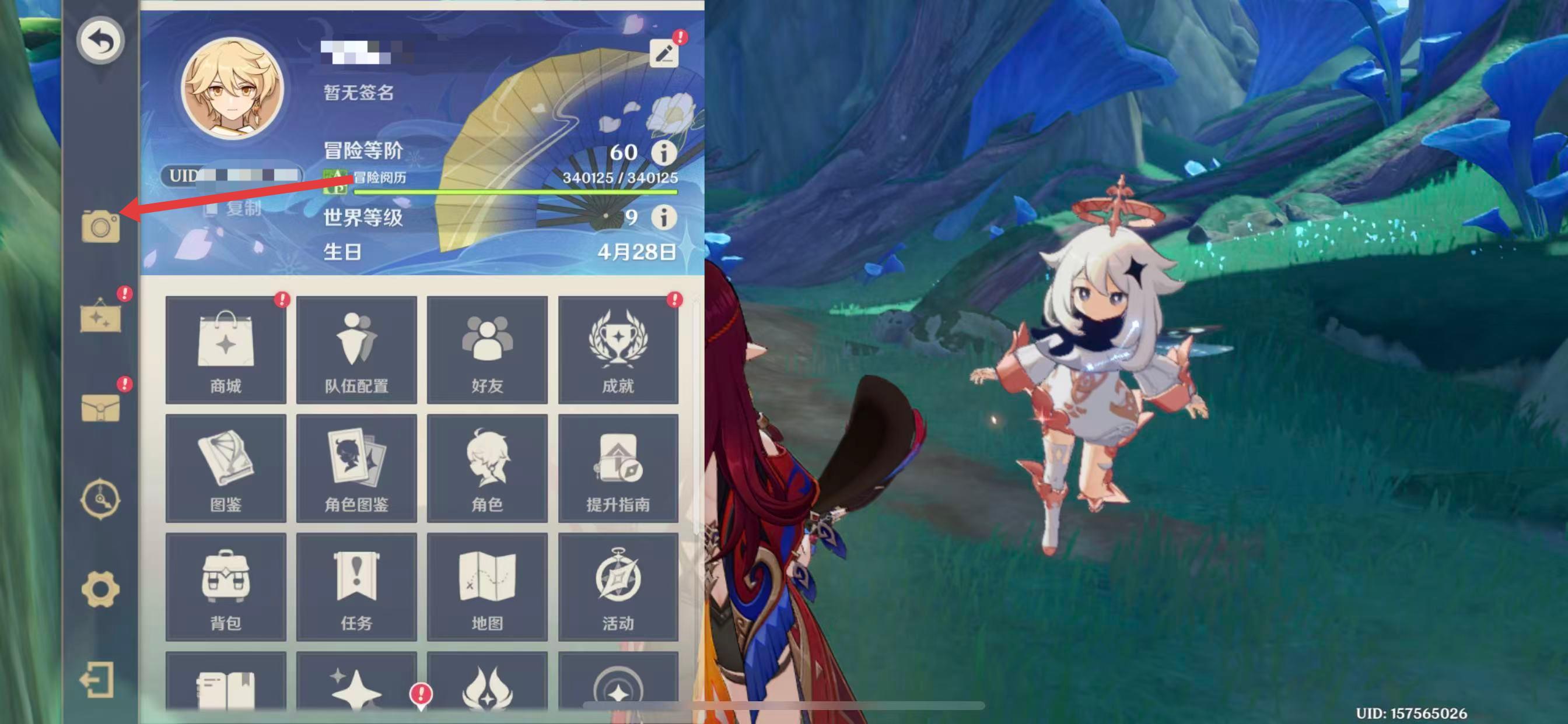 1、點擊游戲界面左上角的派蒙頭像,打開游戲菜單。