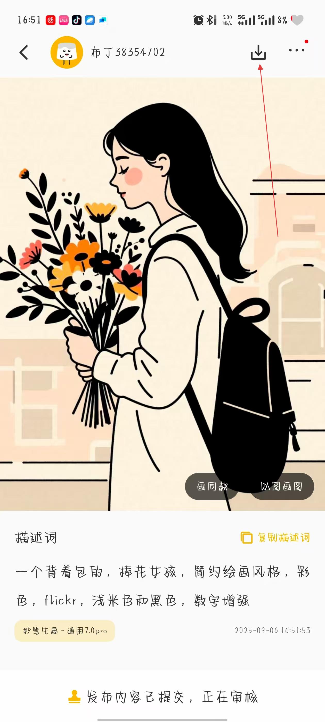 4、圖像生成后,若滿意,點(diǎn)擊頁面上方的下載按鈕,將圖像保存到手機(jī)相冊。