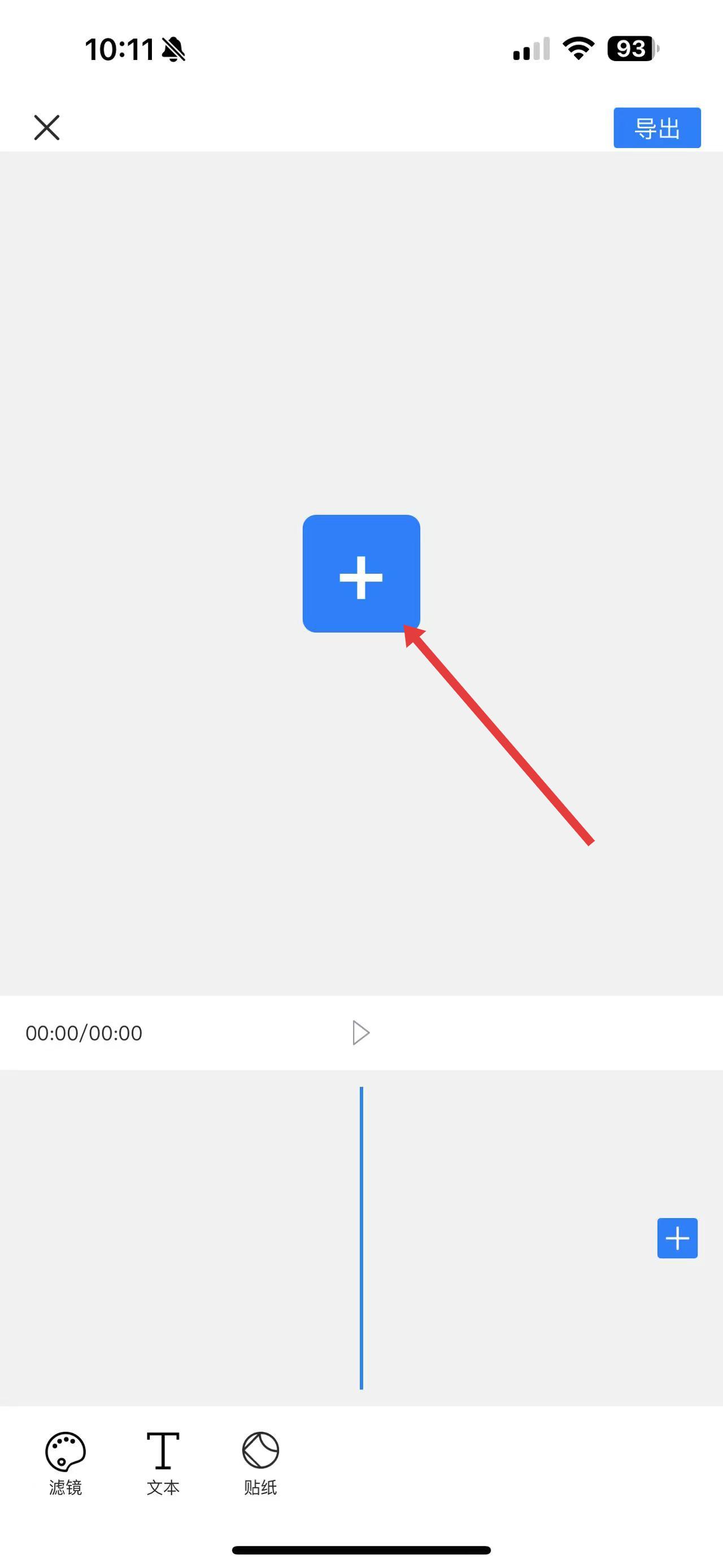 1、在清爽視頻編輯的視頻編輯界面中,點(diǎn)擊中間藍(lán)色帶有加號(hào)的按鈕準(zhǔn)備添加素材。