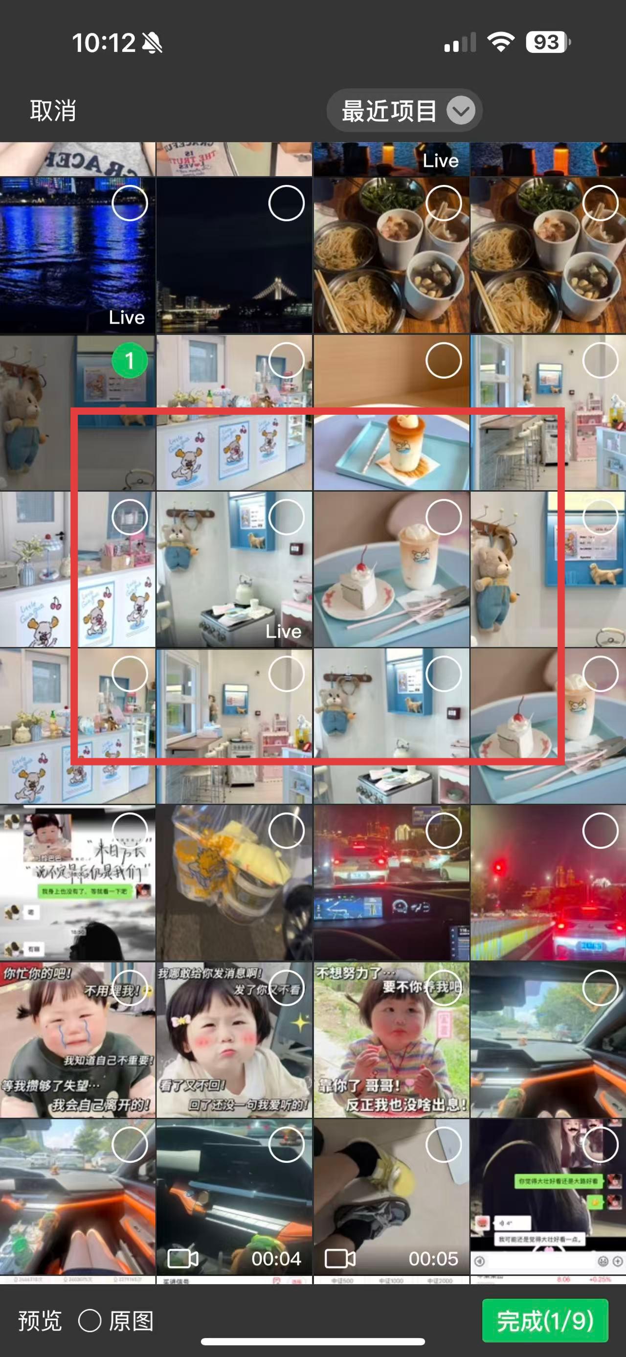 2、在彈出的素材選擇界面里,從最近項(xiàng)目中挑選想要添加進(jìn)視頻的貼紙圖片素材。