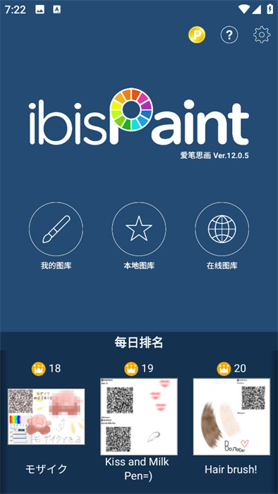 1、打開(kāi)ibisPaint應(yīng)用,點(diǎn)擊界面中的我的圖庫(kù)圖標(biāo),進(jìn)入個(gè)人藝術(shù)作品管理頁(yè)面,可查看、編輯已有作品或創(chuàng)建新作品。