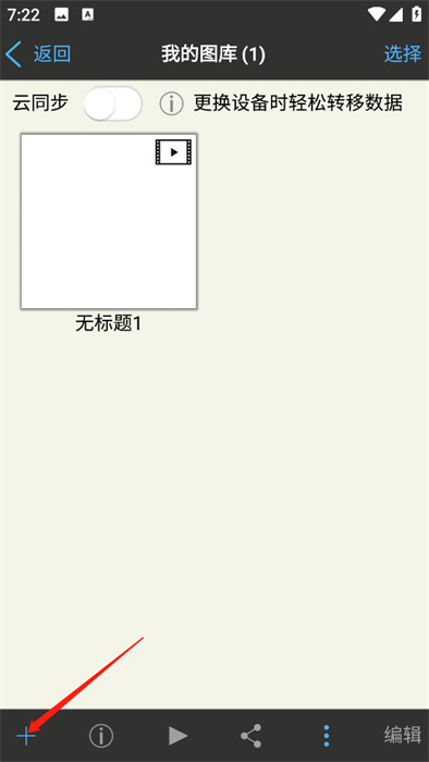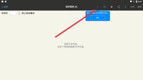 2、在我的圖庫(kù)界面,點(diǎn)擊右上角的+按鈕,展開(kāi)新建功能菜單,準(zhǔn)備選擇創(chuàng)建或?qū)胱髌返姆绞健?