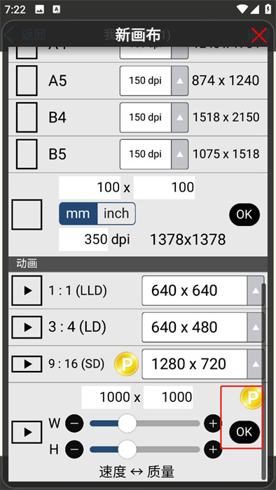 3、在調(diào)整完成尺寸和畫(huà)面之后,點(diǎn)擊下方的【ok】即可看到正常的畫(huà)布;