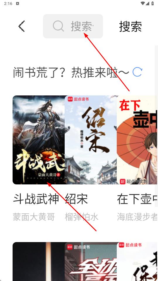 1、打開奇墨小說APP,進(jìn)入搜索界面,點(diǎn)擊頂部搜索欄,輸入想要查找的小說關(guān)鍵詞如斗戰(zhàn),進(jìn)行搜索。