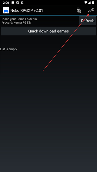 1、打開Neko RPGXP模擬器,在主界面點(diǎn)擊右上角的扳手圖標(biāo)。