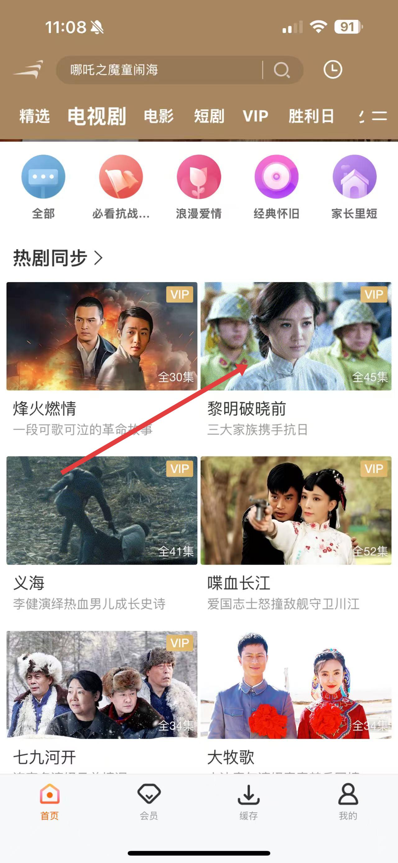 1、打開風行視頻APP,在電視劇欄目下找到想要下載的電視劇,比如黎明破曉前。