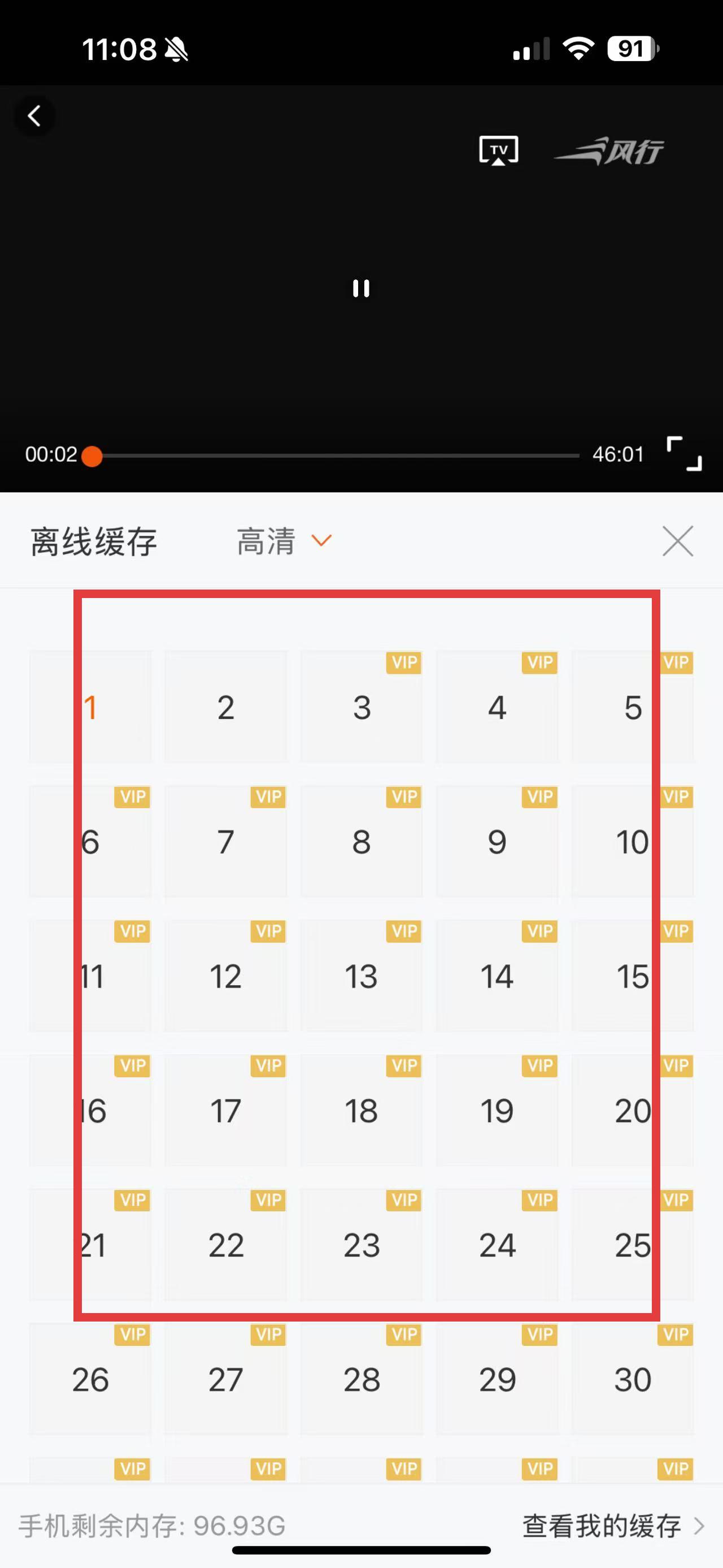 3、進入離線緩存界面后,選擇需要下載的劇集,點擊對應劇集的圖標即可開始下載,下載完成后可離線觀看。