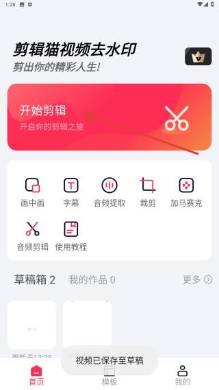 1、打開(kāi)剪輯貓APP,在主頁(yè)找到開(kāi)始剪輯的功能按鈕。