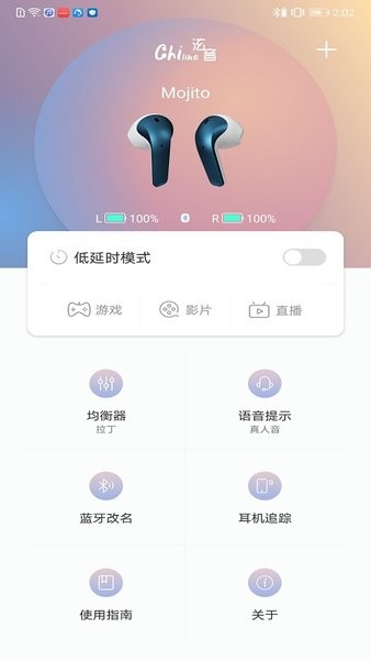 與chiline泫音耳機藍牙配對后,用戶可對耳機進行一系列操控。支持藍牙耳機改名,顯示耳機的藍牙連接狀態(tài)、顯示耳機的左右耳電量,用戶可進行音效切換和定制!