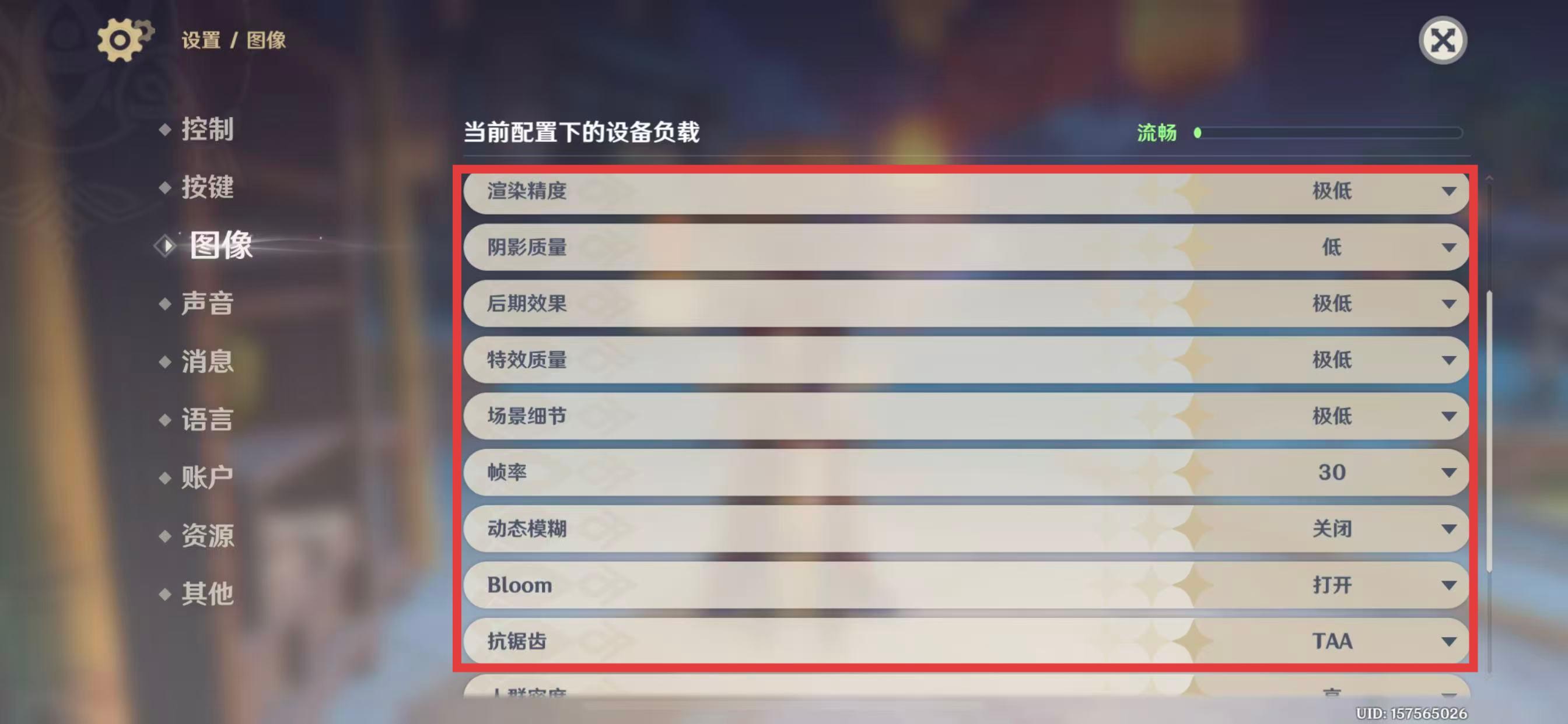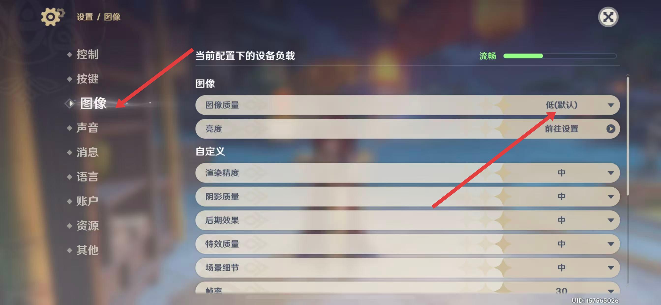 4、可以將渲染精度、陰影質(zhì)量、后期效果、特效質(zhì)量、場(chǎng)景細(xì)節(jié)等圖像相關(guān)設(shè)置適當(dāng)調(diào)整。