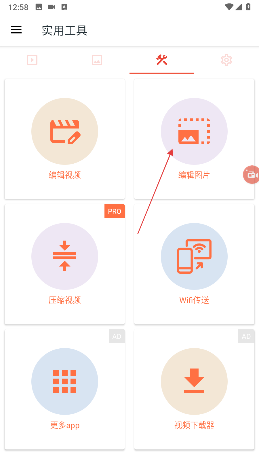 1、打開AZ Screen Recorder,進(jìn)入實(shí)用工具界面,點(diǎn)擊編輯圖片選項(xiàng),進(jìn)入圖片選擇頁面。