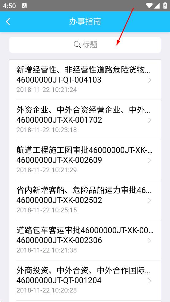 3、在辦事指南列表頁(yè),可瀏覽或搜索相關(guān)辦事指南內(nèi)容,查看詳細(xì)信息。