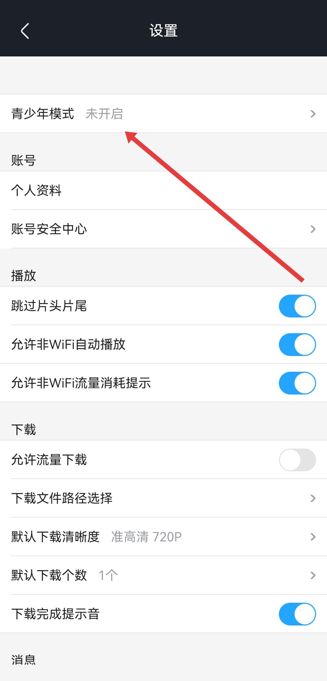 2、在設(shè)置的頁(yè)面中,找到并點(diǎn)擊青少年模式的選項(xiàng),進(jìn)入青少年模式的設(shè)置頁(yè)面。