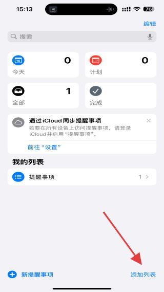 4、點擊后,會進入新建列表的界面內,可點擊左下角新提醒事項添加重要事項。