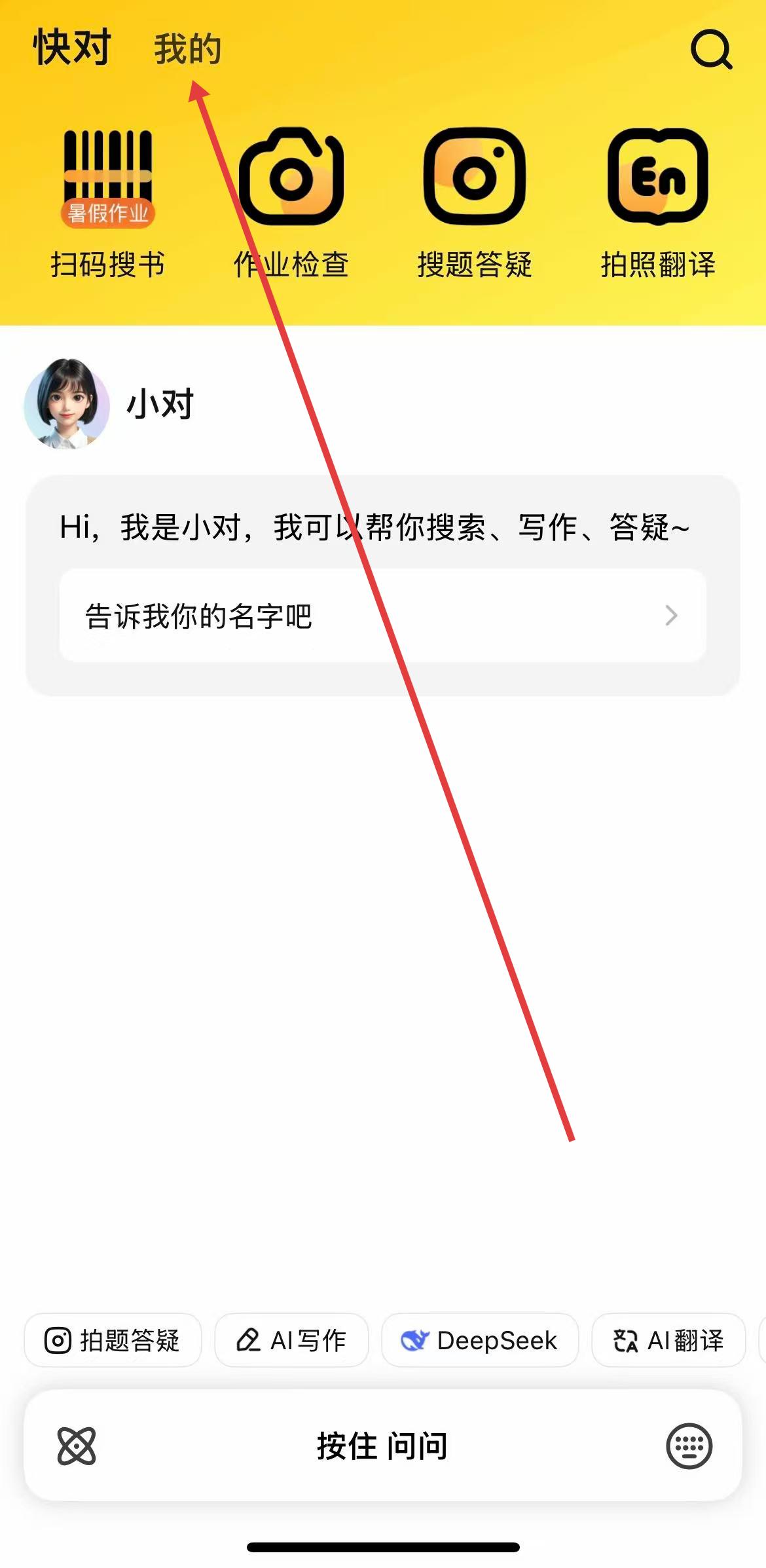 1、下載完快對APP之后,打開快對APP,點擊頂部導(dǎo)航欄中的我的,進入個人頁面。