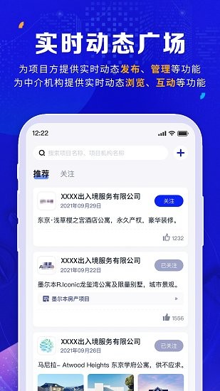 橡牧APP是一個海外項目方和國內中介機構一站式對接合作服務平臺,為項目機構提供給海量國內中介機構,并對中介機構進行協(xié)會評分認證,保障入駐平臺中介機構的質量,項目及機構動態(tài)的展示及在線IM聯(lián)系等功能。為國內從事海外項目的銷售機構,尋找優(yōu)質海房項目方,精選全球數萬家優(yōu)質項目方,涵蓋海外服務全行業(yè),平臺賦能(項目集采、提高議價權),以及對項目方背景調查、交易監(jiān)管、海外法律支持等,增加交易安全,保障中介機構的權益。并提供在線溝通、在線遞交客戶簽約,促使雙方達成合作,實現共贏!