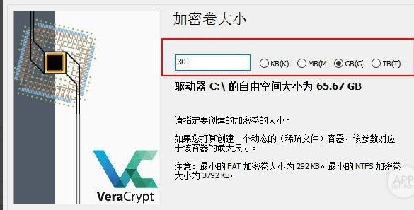 設(shè)置你的加密卷大小。