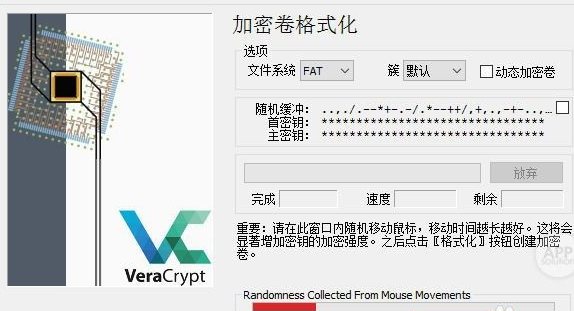點(diǎn)擊格式化。注:點(diǎn)擊格式化前要隨機(jī)移動(dòng)鼠標(biāo),以加強(qiáng)加密強(qiáng)度。
