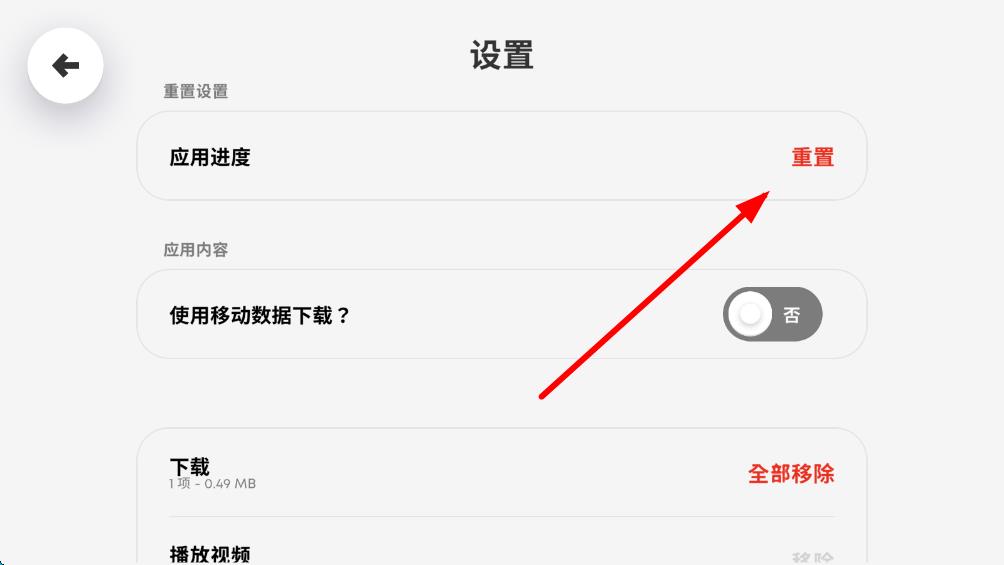 3、在設置界面中找到應用進度選項,點擊其右側(cè)的重置按鈕。