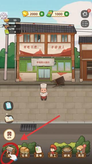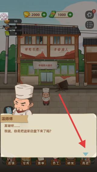 2、點(diǎn)擊剛剛盤下的店鋪,進(jìn)入到店鋪內(nèi)進(jìn)行清理,在游戲中很多方面都可以影響客人對我們的評價,衛(wèi)生或者上菜速度。
