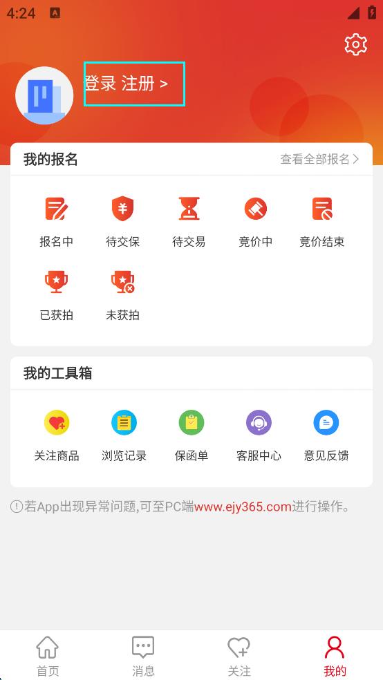3、在個人頁面,點擊“登錄 注冊”,進入登錄界面。