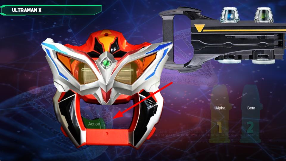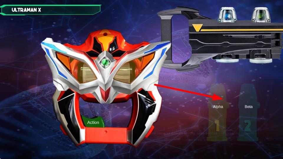 3、再次聚焦變身器,按下Action按鍵會(huì)模擬出酷炫的奧特曼變身音效和動(dòng)畫(huà),讓玩家沉浸式體驗(yàn)變身過(guò)程。