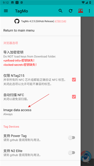 2、在功能菜單中,點(diǎn)擊TagMo Settings選項(xiàng),進(jìn)入設(shè)置頁(yè)面。