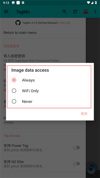 3、在設(shè)置頁(yè)面,找到Image data access選項(xiàng)并點(diǎn)擊,彈出權(quán)限選擇彈窗。