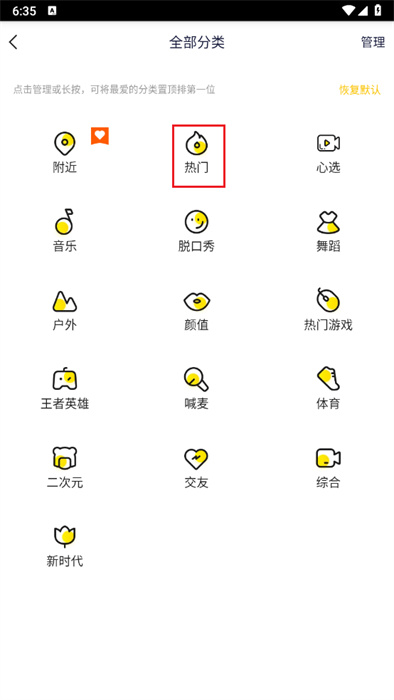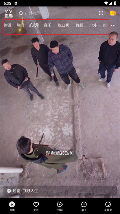 唱跳喊麥、戶外探險(xiǎn)、達(dá)人秀、游戲解說、拍賣購物、體育競(jìng)技、新時(shí)代等時(shí)刻直播正在發(fā)生的精彩生活。