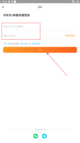 4、在手機(jī)號/郵箱快捷登錄的界面內(nèi),輸入要登錄的手機(jī)號、驗(yàn)證碼,再點(diǎn)擊登錄的按鈕即可。