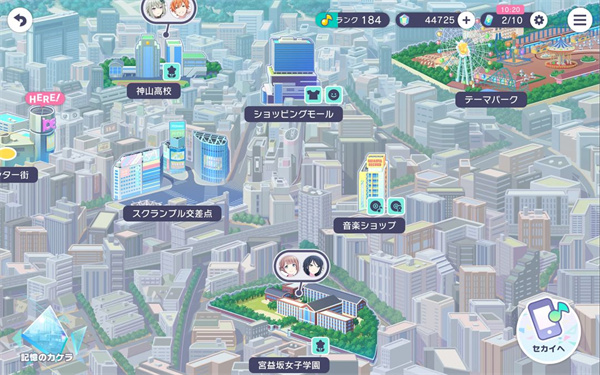 這是現(xiàn)實世界的地圖,其中“宮益坂女子學(xué)園”和“神山高?!笔琴I花的地方(30級解鎖)提升綜合力
