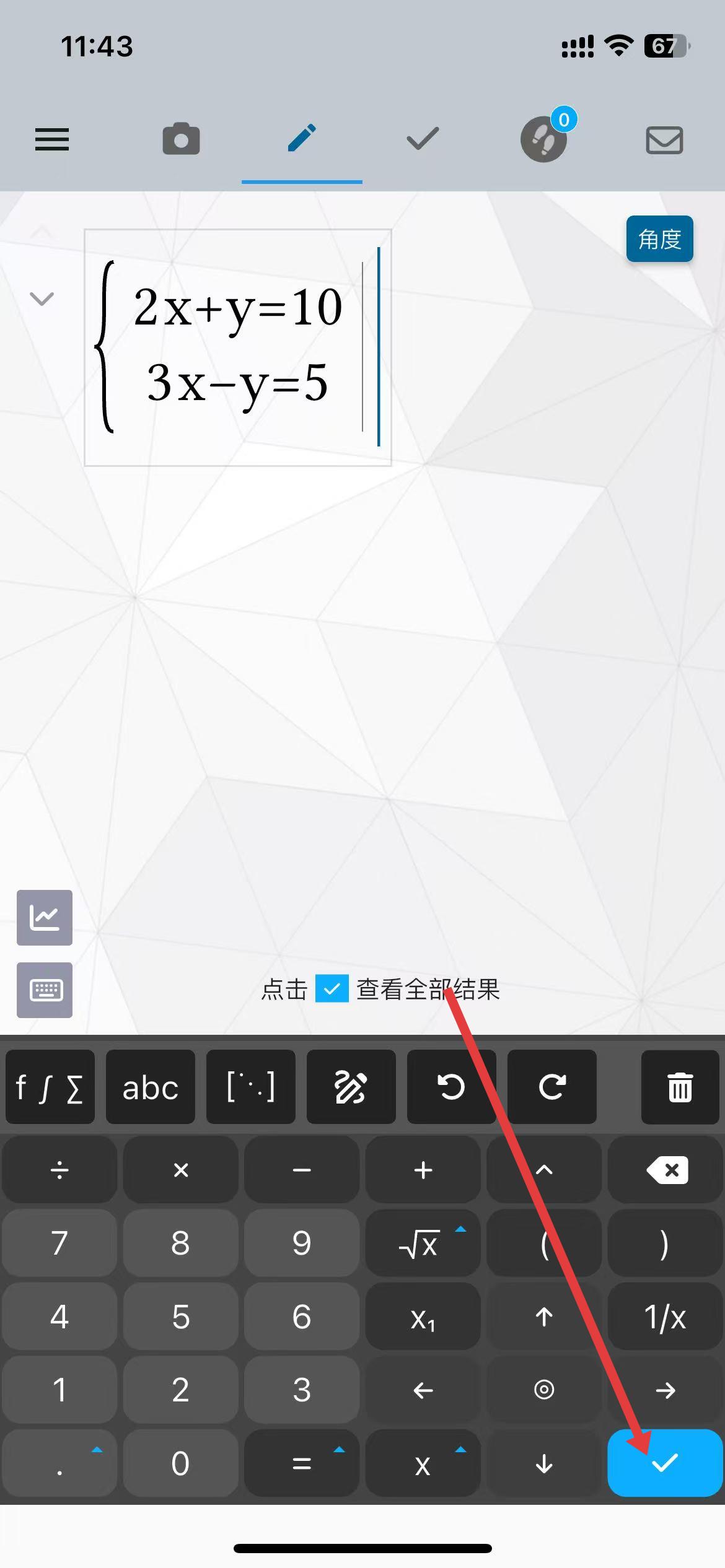只需單擊即可輸入算式:在相機上一鍵單擊,即可使用功能強大的人工智能技術,輸入手寫和排印的數(shù)學問題。或者,使用與老師一樣的數(shù)學符號,在計算器中輸入數(shù)學表達式——問題輸入非常輕松,因為它“看上去很順眼”!