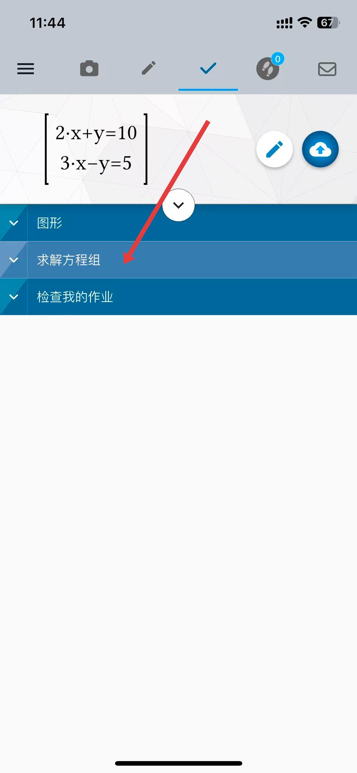 支持拍照識別,利用這里的拍照功能可以一鍵拍照自動識別數(shù)學表達式;