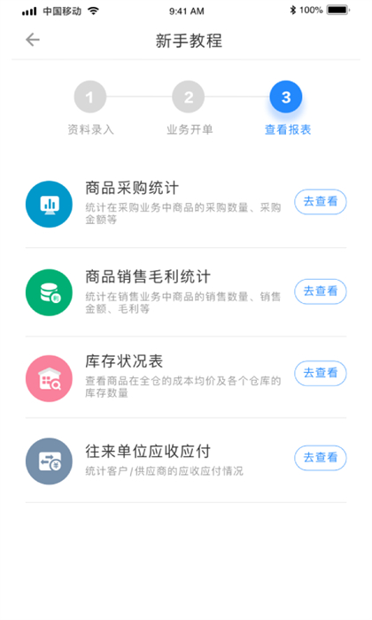 包含銷售、進貨、庫存、財務(wù)常用單據(jù),讓您外出辦公無需繁瑣操作,打開手機即可快速開單