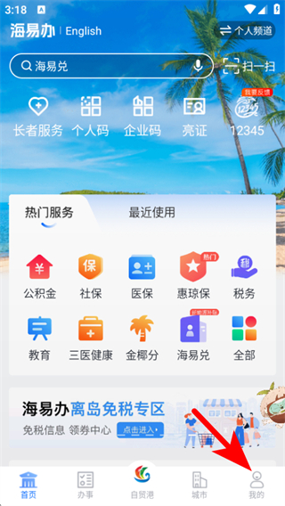 1、在海易辦的首頁,點擊底部我的,進入個人操作的頁面。