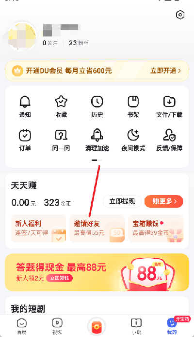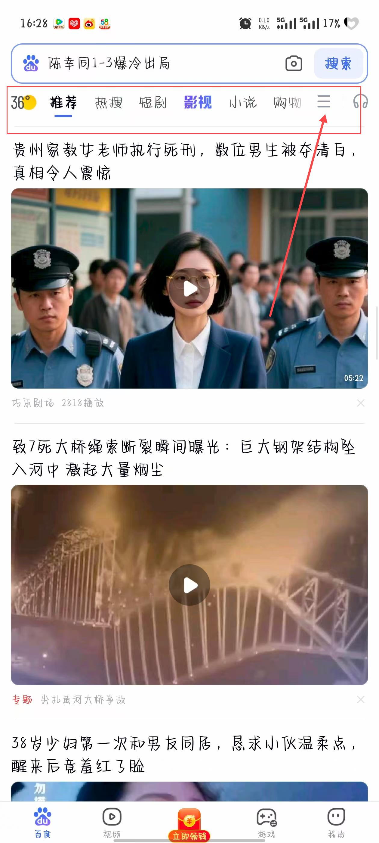1、打開(kāi)百度極速版進(jìn)入首頁(yè),點(diǎn)擊首頁(yè)頂部導(dǎo)航欄中的三圖標(biāo),進(jìn)入全部頻道頁(yè)面。