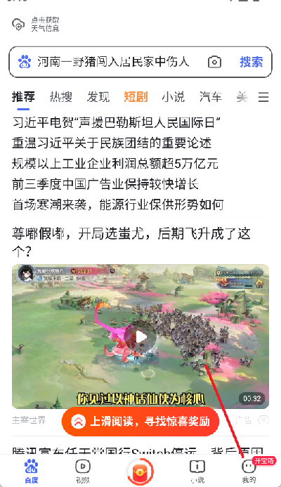 1、首先打開(kāi)下載好的百度極速版APP,進(jìn)入軟件后點(diǎn)擊界面右下角【我的】選項(xiàng);