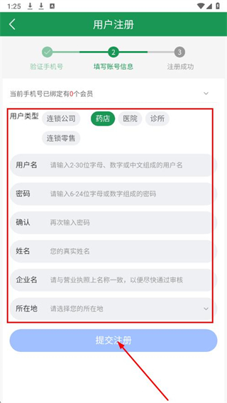 4、選擇用戶(hù)類(lèi)型,填寫(xiě)信息,點(diǎn)擊提交注冊(cè)。