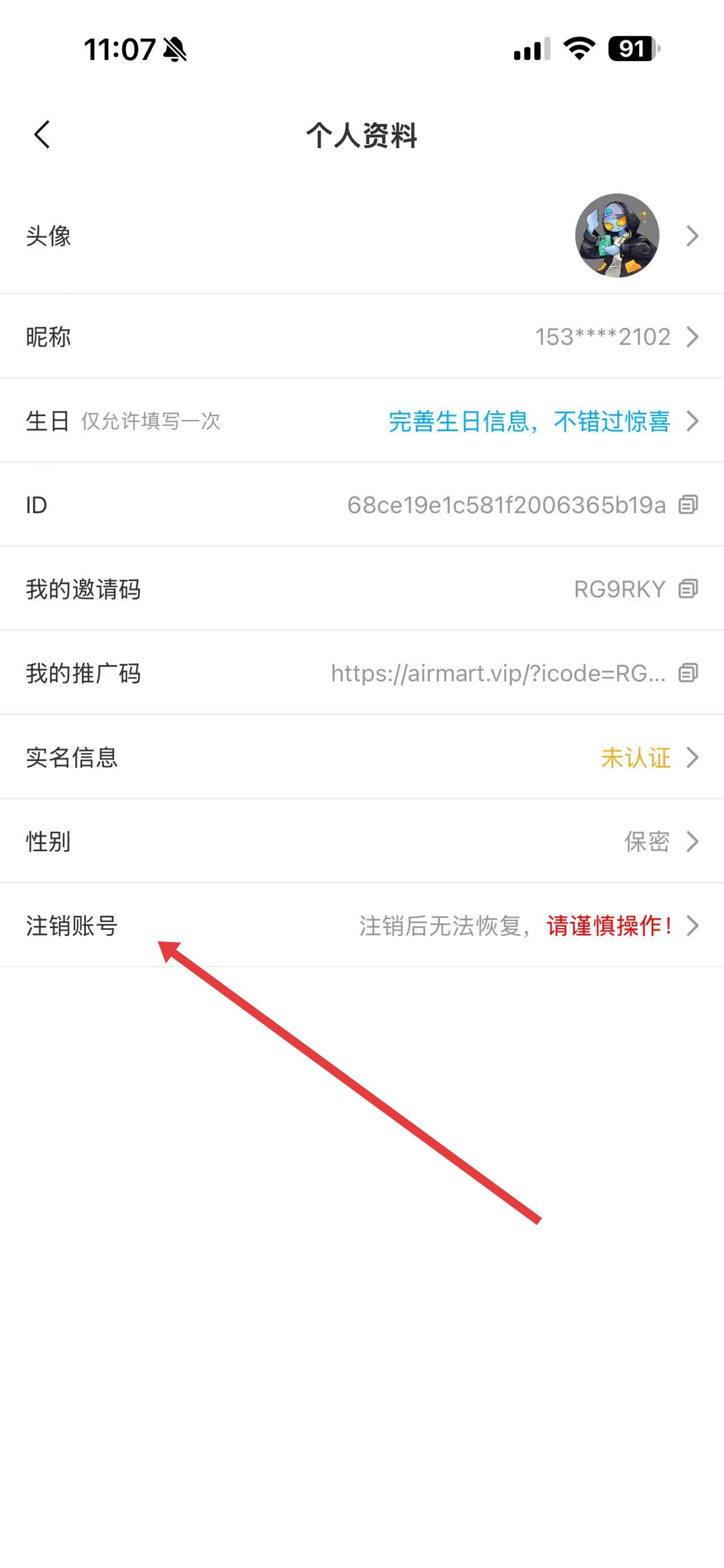 3、在個(gè)人資料頁(yè)面里,找到并點(diǎn)擊注銷賬號(hào)選項(xiàng)。