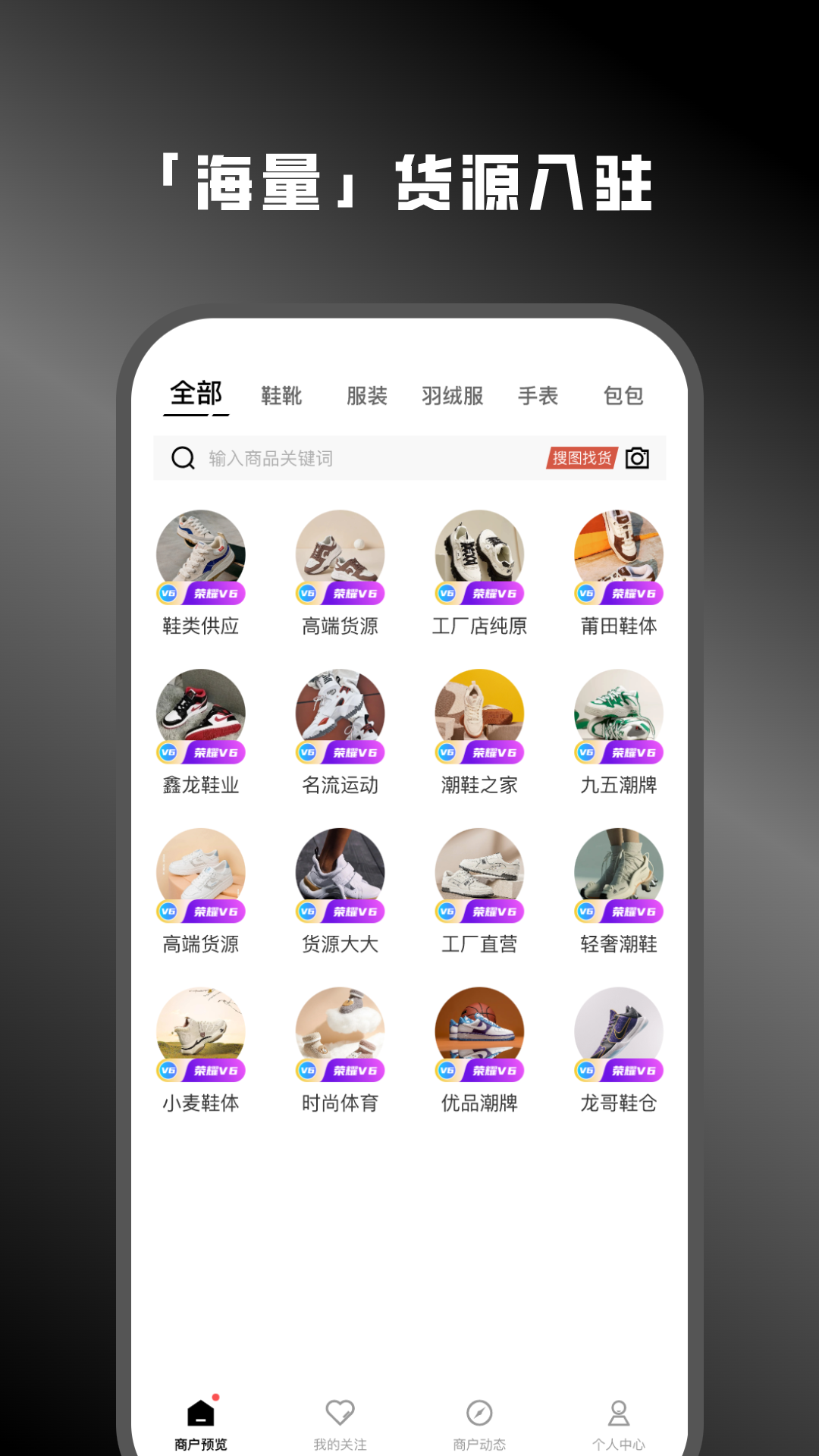 莆田鞋好貨源,匯集全國(guó)一手廠家微商資源, 是微商和實(shí)體店都在用的的找貨App,每年拒絕10萬(wàn)炒貨商家加入,沒(méi)有中間商的一手貨源平臺(tái)。