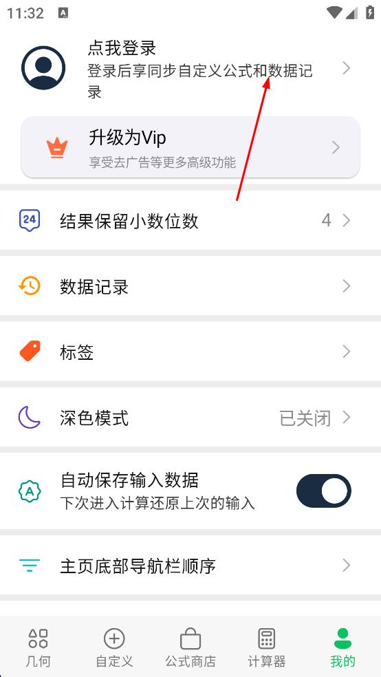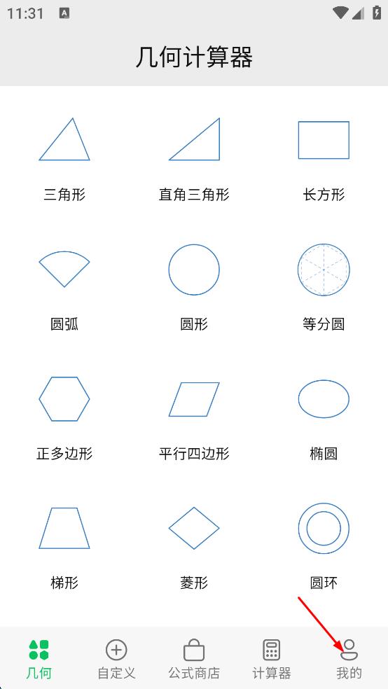 1、打開幾何計(jì)算器APP,點(diǎn)擊右下角我的。