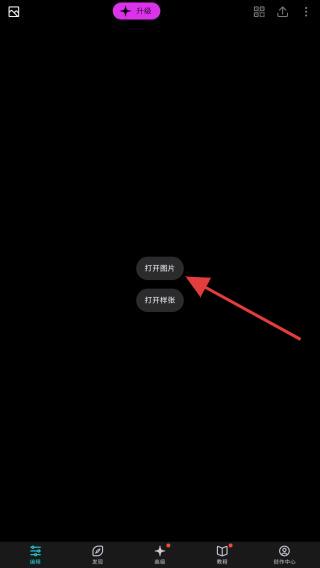 1、打開潑辣修圖APP,點擊打開圖片的功能按鈕。