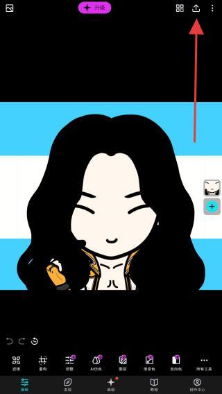 3、可對照片進行濾鏡添加、色彩調整等編輯操作,操作后點擊右上角↑的圖標。