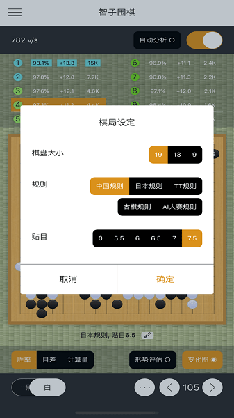 智子圍棋為您提供圍棋AI復(fù)盤(pán)功能。該軟件是是目前最專業(yè)的圍棋AI復(fù)盤(pán)應(yīng)用。