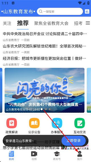 1、打開(kāi)山東教育發(fā)布,點(diǎn)擊底部導(dǎo)航欄我的。
