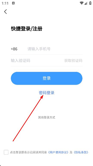 3、進(jìn)入登錄頁(yè)面,點(diǎn)擊下方的密碼登錄選項(xiàng)。
