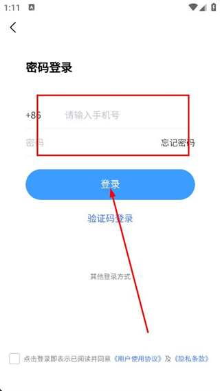 4、輸入手機(jī)號(hào)和密碼,點(diǎn)擊登錄即可登錄賬號(hào)。