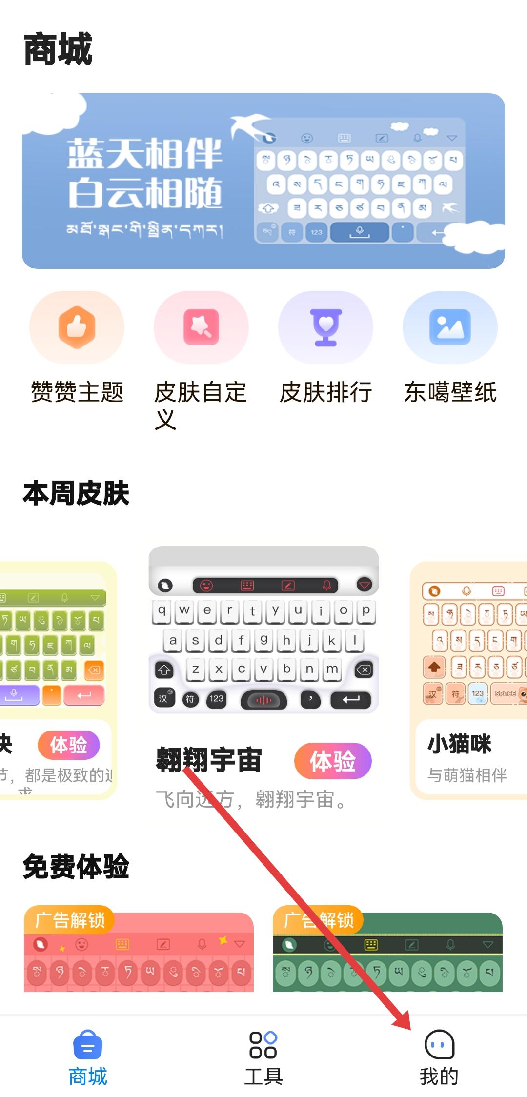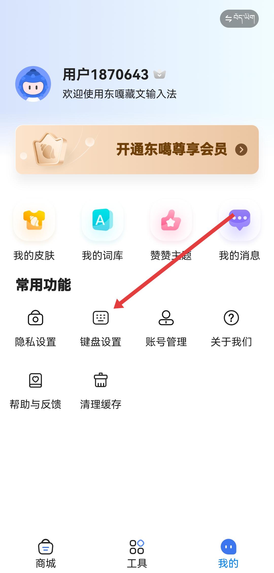 2、在我的頁面,需要點(diǎn)擊鍵盤設(shè)置的選項(xiàng),進(jìn)入鍵盤的設(shè)置頁。